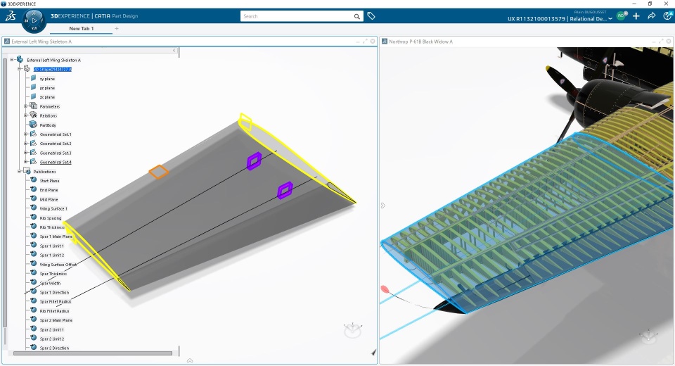 After creating Booms structures, I focused myself on the Wings structural parts. I choose to divide the wing in 3 sub-assemblies, in which one I have created a Skeleton with published elements (geometries and parameters)