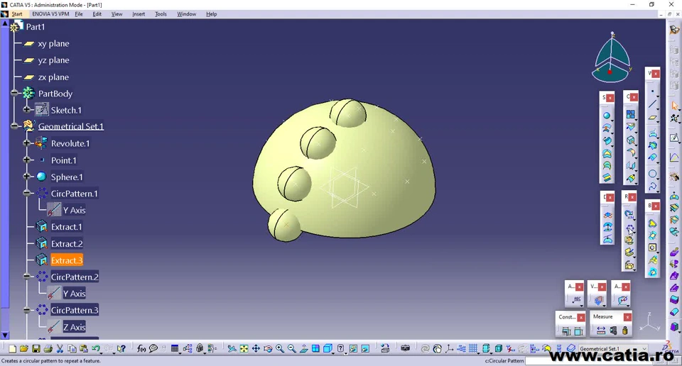 CATIA v5 Pattern with macro on a sphere surface