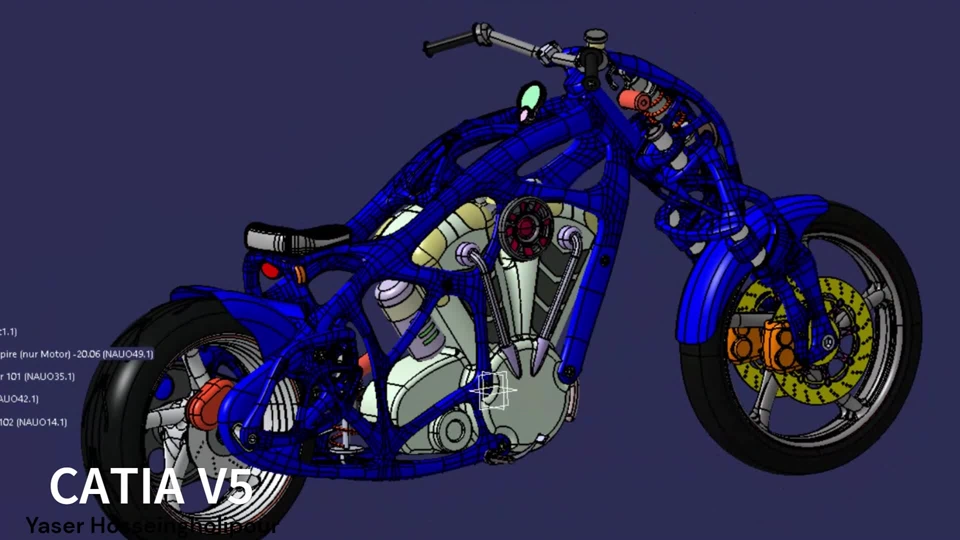Designing and modeling the motor chassis according to the existing equipment with the lightest and most durable mode, in this model, I increased the gap between the two wheels to make it different from the usual. Modeling in CATIA software and with 3DXML present.