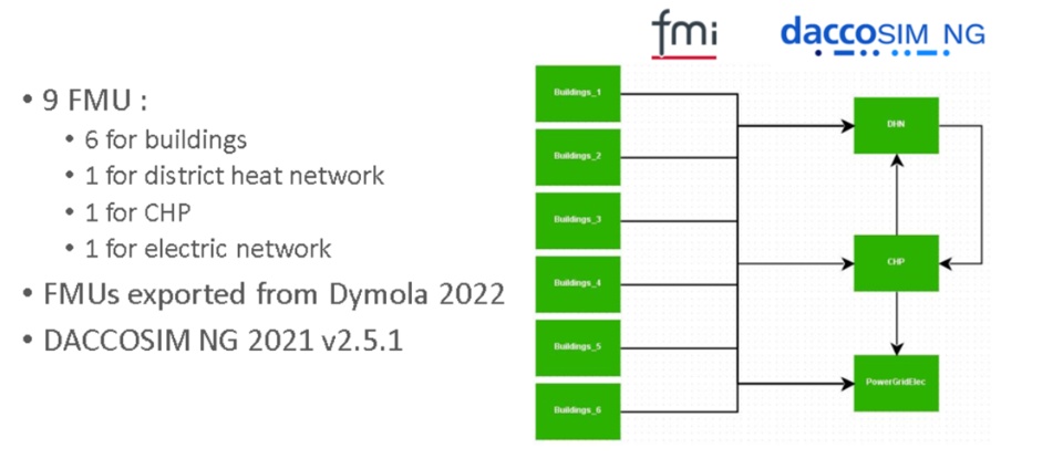 • The complete model is spitted into FMUs exported by Dymola, and co-simulated in DACCOSIM NG