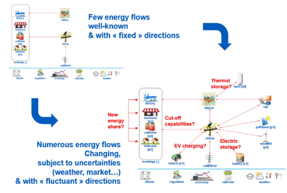 The resulting view  shows how modelling the various facets of the local energy system enables to better optimize the different interactions between the grid’s assets, the global goal being to improve key performance indicators such as the district’s energy efficiency and reduce the environmental footprint, while keeping a good competitiveness and securing networks stability and supply.