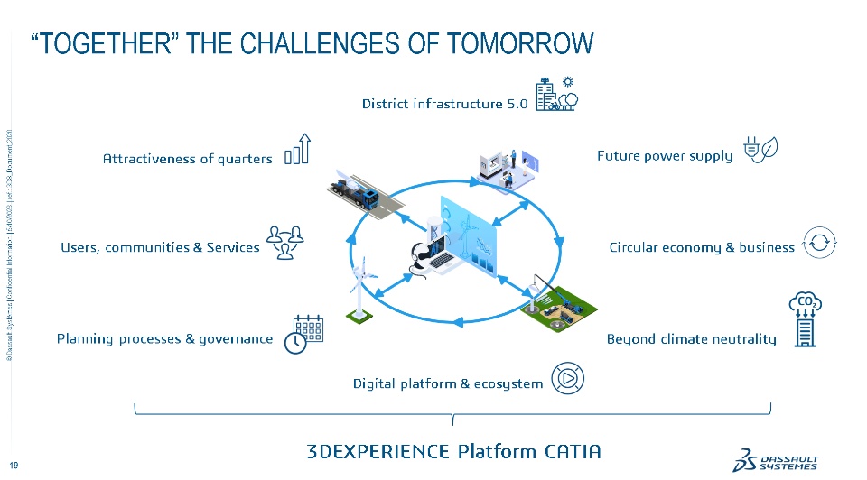 Dassault Systemes and CATIA joined Fraunhofer IAO City of the Future - Future District Alliance with real estate companie, cities Munich and Pforzheim energy suppliers, districts developers and construction companies to work on solutions for future districts and the city of the future. The alliance brings together experts from different fields to create a more sustainable, efficient, and livable urban environment.