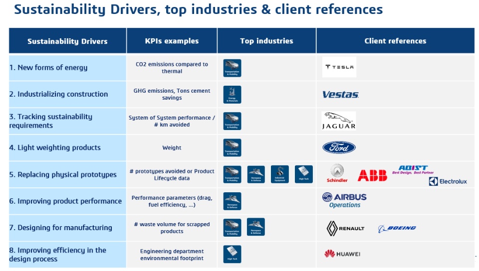 In context of the EU taxonomy for sustainable activities, we worked on key sustainability drivers and use cases to evaluate CATIA impact in sustainable design at our major clients.