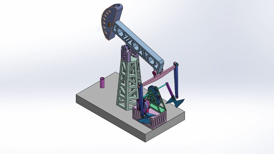In this project, the Oil Pump was operational over the required range and fulfilled each of the assigned specifications. It used a counterweight mechanism in order to extract oil from a well through a reciprocal motion. The rotation of the input shaft, rotates the pinion within a gearbox that incorporates a two-stage gear reduction with two sets of meshed gears with calculated ratios, moving the counterweight resulting in the reciprocal vertical motion of the pump-shaft.