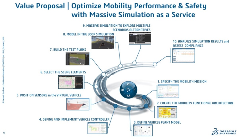 “The different processes to develop ADAS and Autonomous Mobility System is an end to end endeavor from the elicitation of the mobility mission thanks to a System of System architecture to Certification Driven mobility Experience based on Massive simulation. 3DEXPERIENCE will be the key enabler to make of proof of the reliability of the Autonomous Driving features"