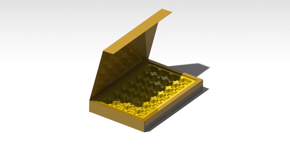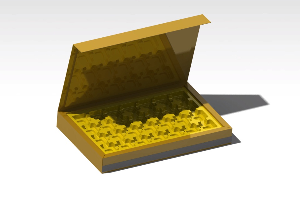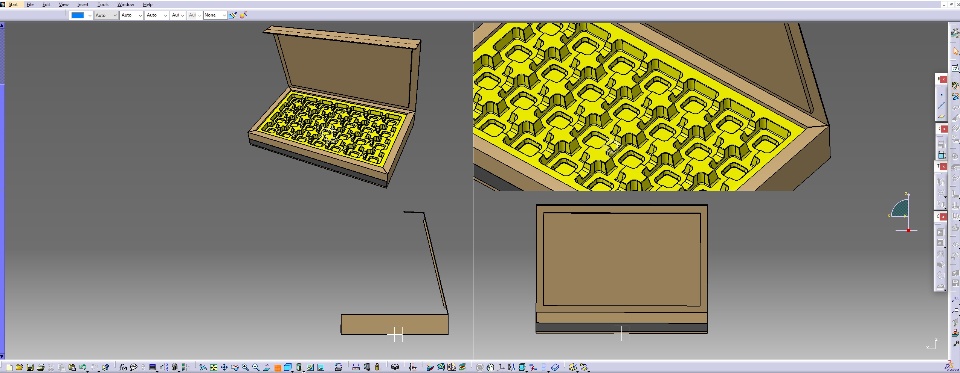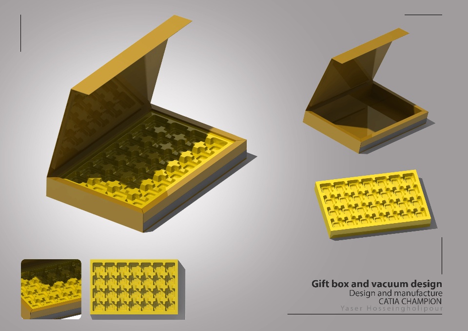 In the design of this gift box, which includes the same box with a vacuum arrangement. The box is made of cardboard and the vacuum (vacuum forming) is made of PET. CATIA Software