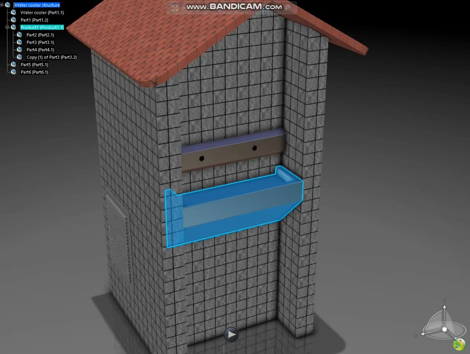 The detailed modeling of the water cooler is in the first stage, the creation of a concrete or light brick structure around the water cooler, and in the next stage, the design of the steel basin and the part that holds the faucets is installed.