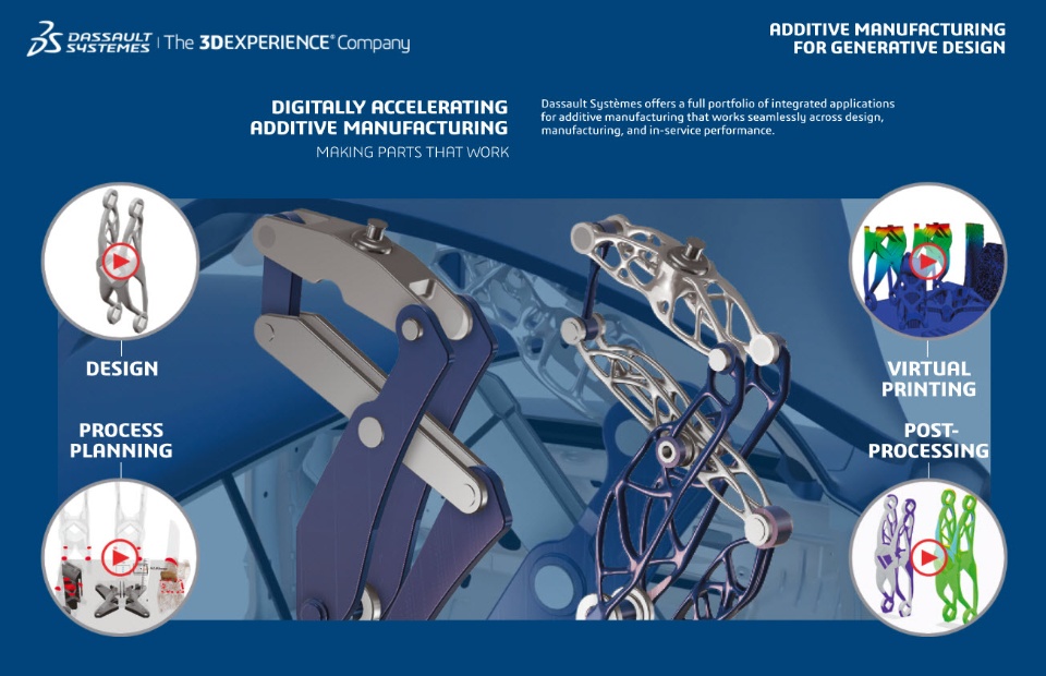 Dassault Systèmes offers a full portfolio of integrated applications for additive manufacturing that works seamlessly across design, manufacturing, and in-service performance.