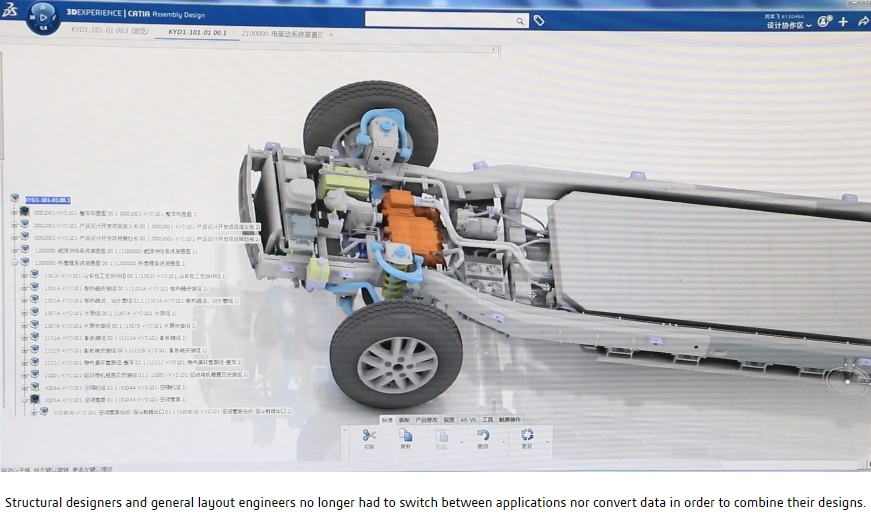 “The collaborative design process for the van on the 3DEXPERIENCE platform was 30% more efficient compared to the truck,” said Li Fei, section chief of the Chassis Development Department at DFAC. “The ability to integrate electrical design into the same 3D model while leveraging the single data environment provided by the 3DEXPERIENCE platform also meant we encountered as much as 70% fewer design problems. The quality of our design improved significantly.”