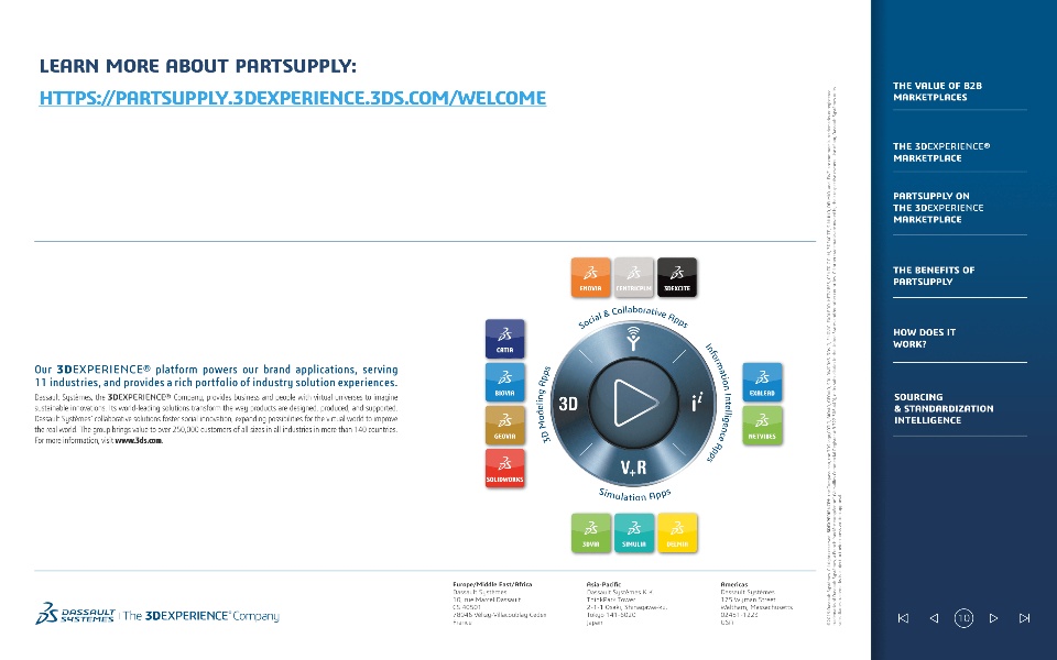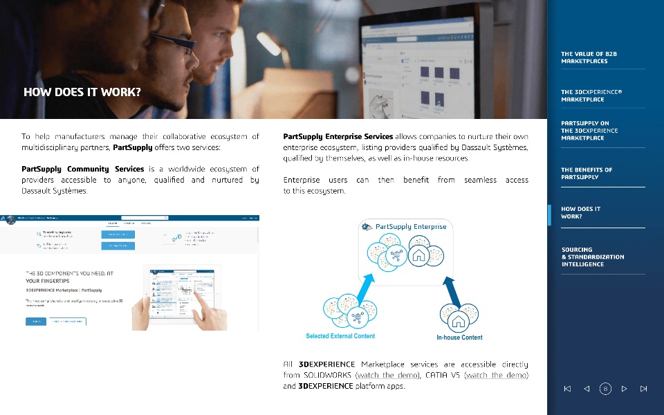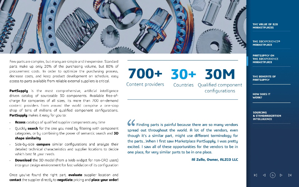 Enter PartSupply on the 3DEXPERIENCE Marketplace, the most comprehensive, artificial intelligence driven catalog of sourceable 3D components. Available for companies of all sizes, its more than 700 on-demand content providers from around the world comprise a one-stop shop of tens of millions of qualified component configurations.