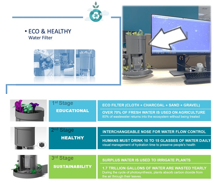 The solution developed is an individual water filter for visual management of hydration time focused on preserving people's health, in addition to sustainability, intending on the reusing of water as well.