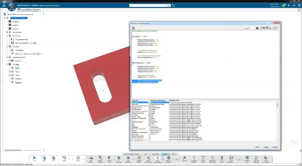 EKL (Enterprise Knowledge Language) Rules are a powerful Knowledgeware tool that can be used to build complex relationships between parameters and object behaviors. As such, they represent a fundamental component of parametric modelling and workflow automation within CATIA.