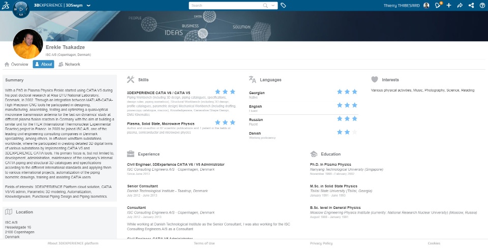 I am very happy to share with you our latest addition to the CATIA Champions Program. Erekle Tsakadze (@ET), 3DEXPERIENCE / CATIA Administrator working for ISC A/S in Denmark was invited by Thomas Biou (@TB) to join the Program a few weeks ago.