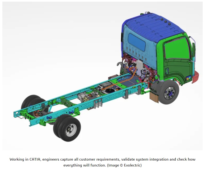 Evolectric works closely with its clients to determine the best way of converting their fleets from diesel to electric power, taking into account the most suitable electrification system and power sources. And it tests and verifies all of this in the virtual world first. Working in CATIA, engineers capture all customer requirements, validate system integration and check how everything will function.