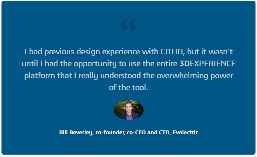 “Further down the road, I see the 3DEXPERIENCE on the cloud platform as a great way to roll out real-time updates so that when we make design changes, they’re automatically updated in our instruction manual in the cloud, ready for our partners to access,” said Andrew Pontius, head of Product and Strategic Partnerships at Evolectric.