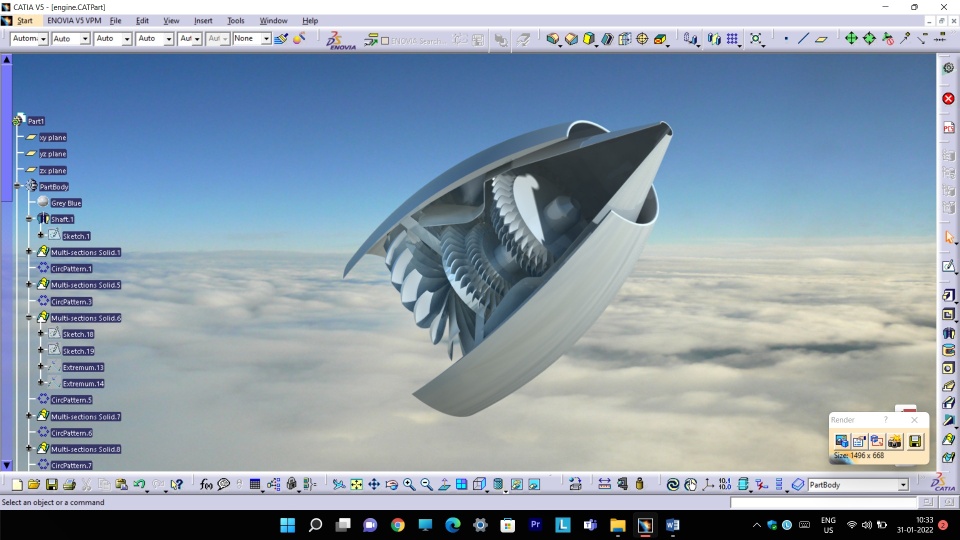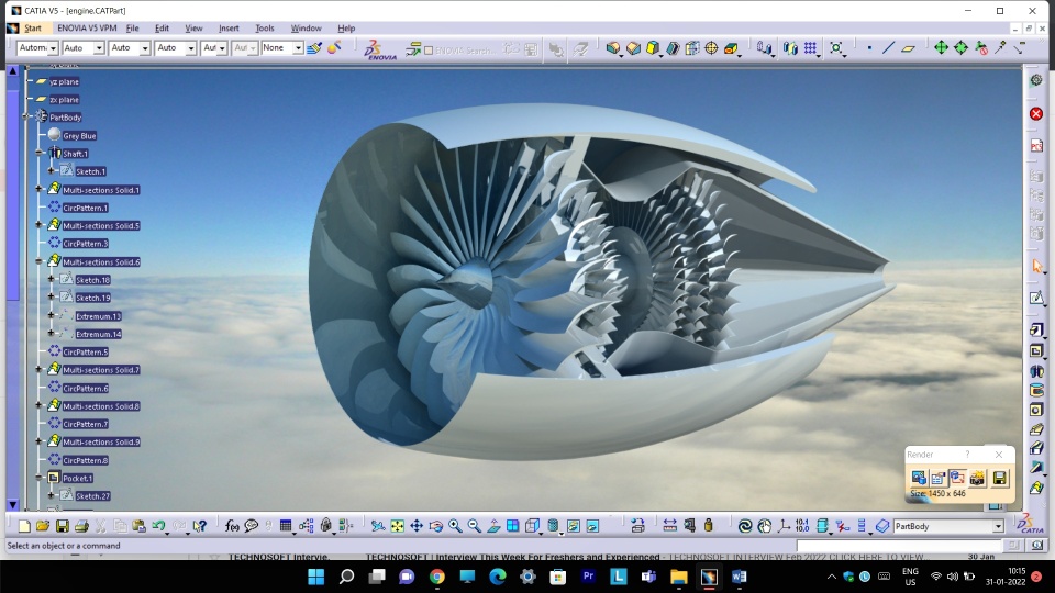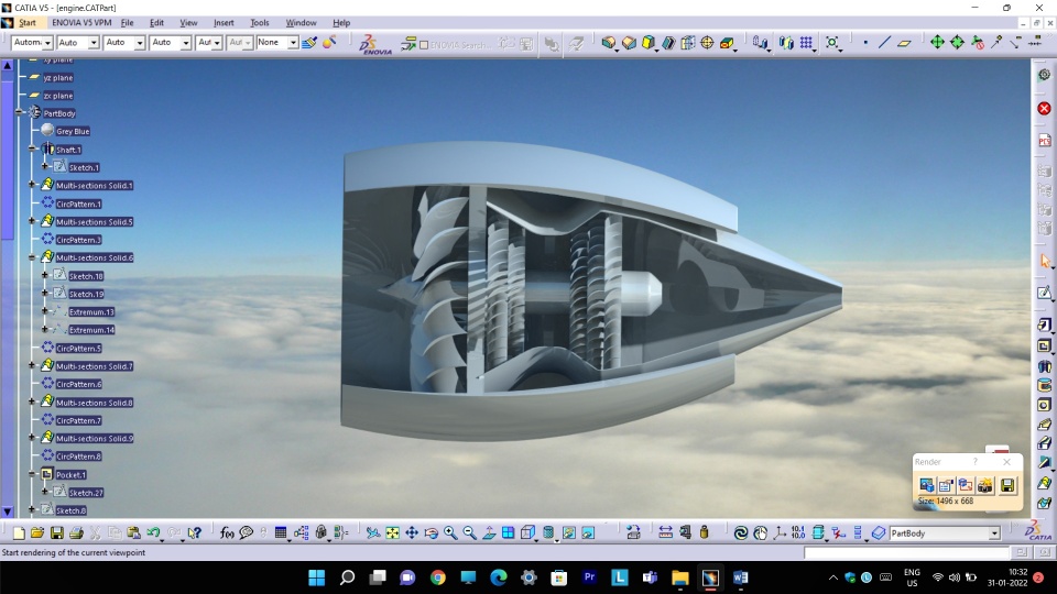 I have designed a mini Jet engine using Catia V5 and rendered it.