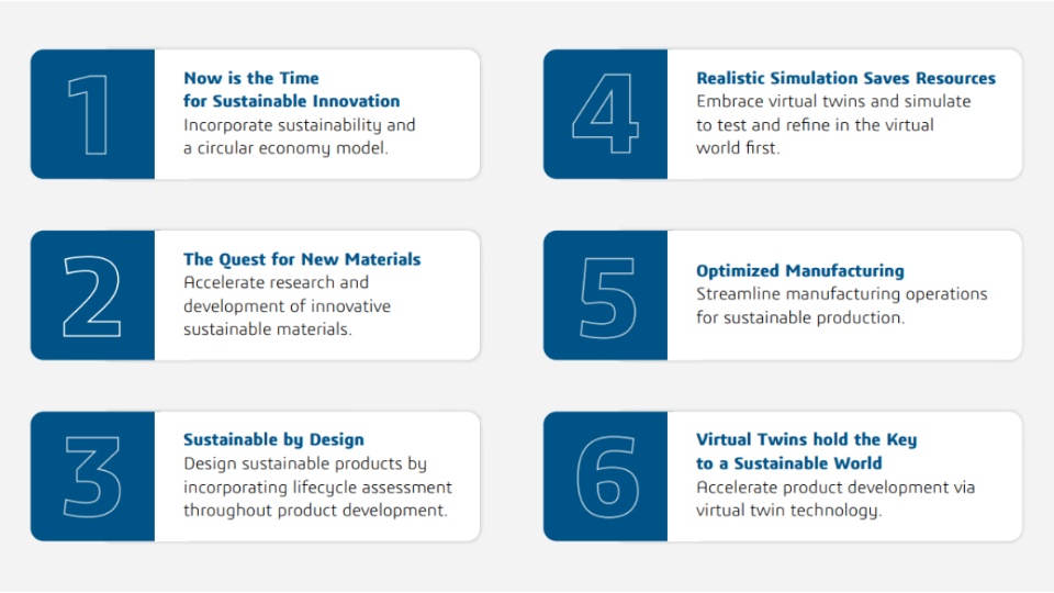 These are steps to support sustainability goals by optimizing product development and manufacturing.
