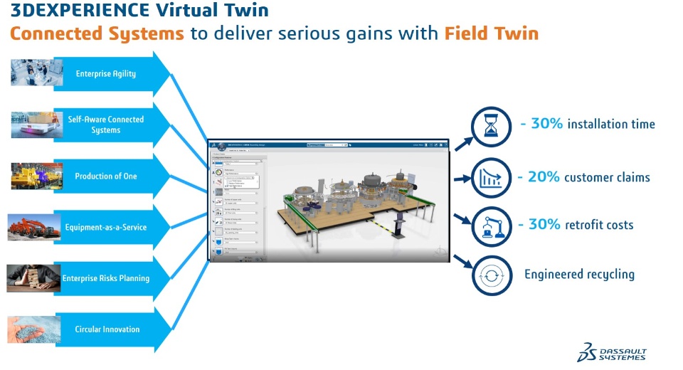 The service or field twin being probably the one where the value of connected systems really reveals itself . Indeed, with a system thinking you will enable large cost savings during installation, quality claims and later on full retrofit executions.