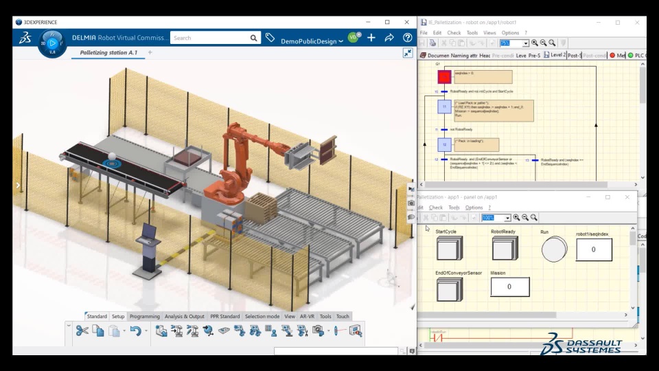 In this case here, we want to verify the correct execution of the application controlling the entire line, meaning giving order to the conveyor and to the robot.