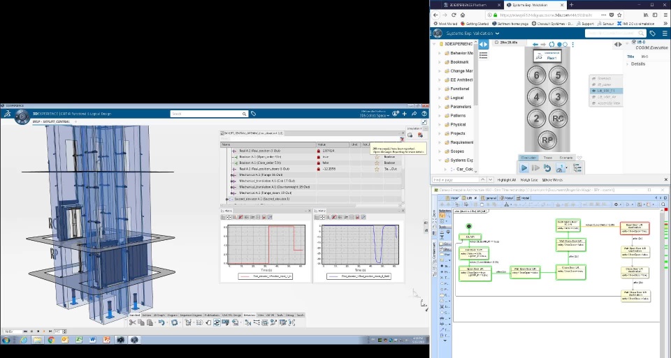 You can see the example we’ve made on an elevator, we have the complete Virtual twin including the control logic, and also the multi physics behavior.
