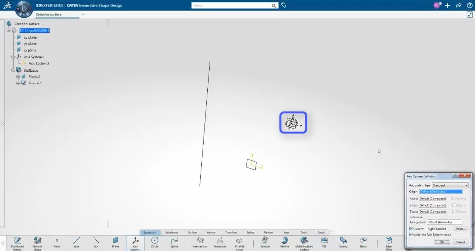 You can now create your extrusion by choosing the shape you have drawn as a profile and one of the axes previously created as the direction.
