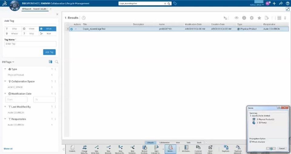 First, you have to search in the 3DEXPERIENCE the 3DPart or the Physical Product you want to delete.