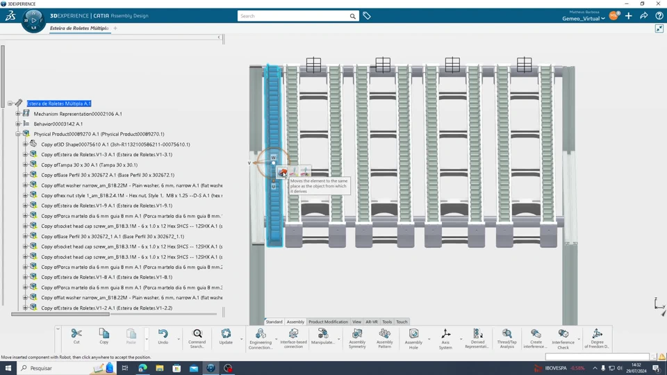 I am using Assembly Design to reposition the components of a tool resource. However, I am not acquainted with this application and cannot move them properly. When trying to move one of its parts, the entire model is moved together. You can see that in the following video:
