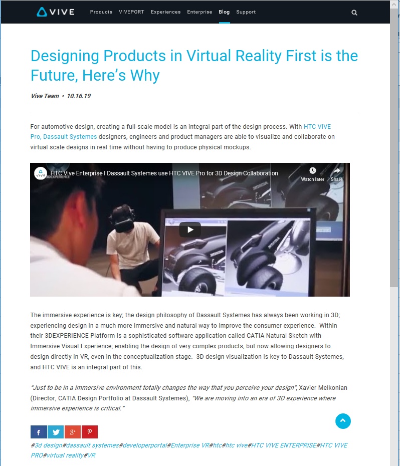 HTC Vive and the 3DEXPERIENCE Immersive Visual Experience