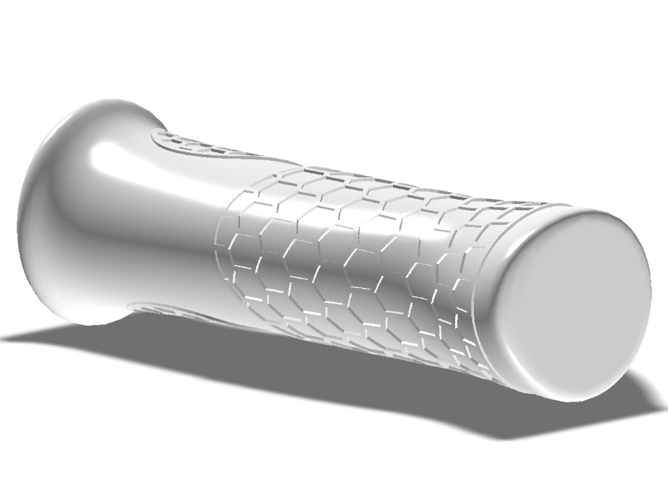 | Could you control the depth of the pattern? Perhaps going from negative to positive along the grip? | Absolutely. Within the workflow we can setup ways of varying the pattern depth. For instance, for the spiral pattern the grid of points could have an offset dimension which varies. This would allow the tubes swept along the wireframe to come in and out of the grip body. Then we could have both a Remove for cutting and an Add for combining the portions that rise out of the grip. Thanks for asking. It's a cool idea. |