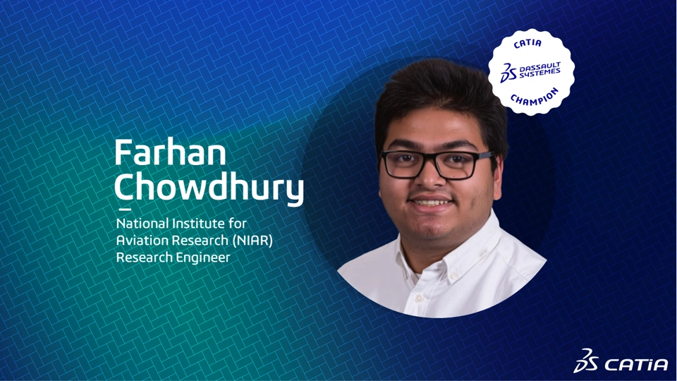 Farhan is a Research Engineer at Wichita State University’s National Institute for Aviation Research (NIAR), where he uses CATIA daily to create structural aircraft components from legacy engineering drawings. Using core CATIA workbenches, particularly the Aerospace Sheetmetal workbench, he validates and modernizes designs with precision and efficiency.