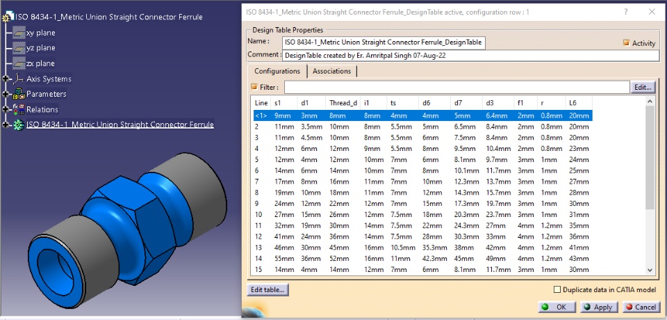 I made parametric model ready to upload in my CATIA Catalog. But is connectors for the ferrule type fitting and the Matric are same?