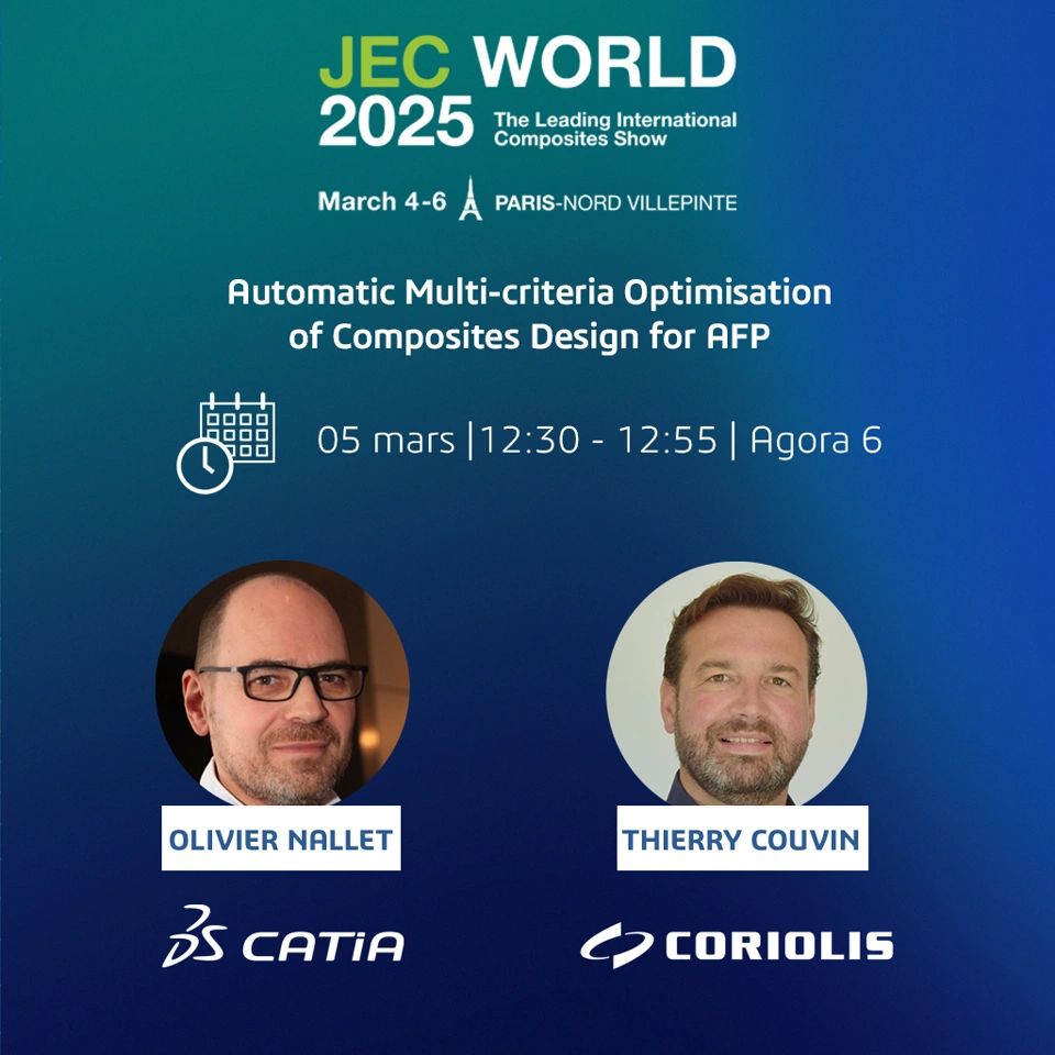 The partnership between Coriolis and Dassault Systèmes, with their CATFiber and 3DEXPERIENCE solutions, opens the door to true Design For Manufacturing (DFM) optimization. Speakers: Thierry COUVIN, CORIOLIS & Oliver NALLET, CATIA
