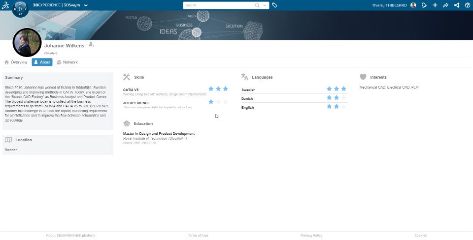 Since 2010, Johanne has worked at Scania in Södertälje, Sweden, developing and improving methods in CATIA. Today, she is part of the “Scania CAD Factory” as Business Analyst and Product Owner. The biggest challenge today is to collect all the business requirements to go from ENOVIA and CATIA V5 to 3DEXPERIENCE. Another big challenge is to meet the rapidly increasing requirement for electrification and to improve the flow between schematics and 3D routings.