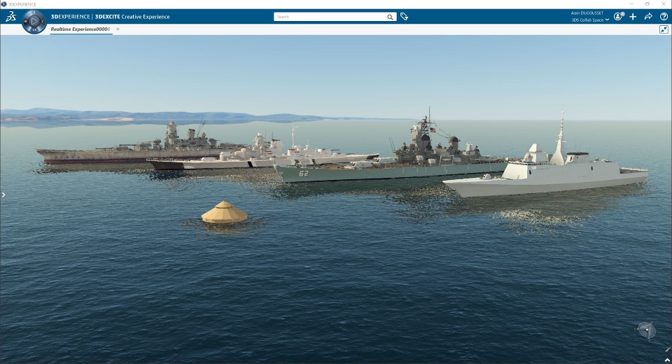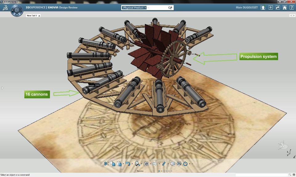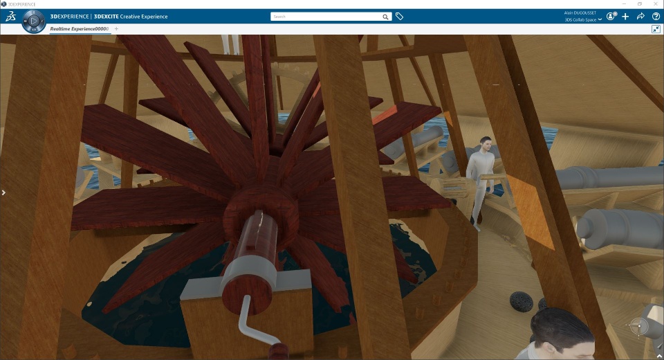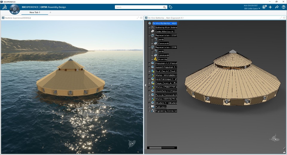 Realtime 3D Experience of Leonardo da Vinci battleship: even if this Digital Mock-up is definitively not finished (how to finish it by the way ?), using our 3DEXPERIENCE Platform and newly available 3DEXCITE applications, I have created a few days ago a new real-time 3D experience putting this concept ship on the sea, in a virtual universe, to virtually bring it to life.