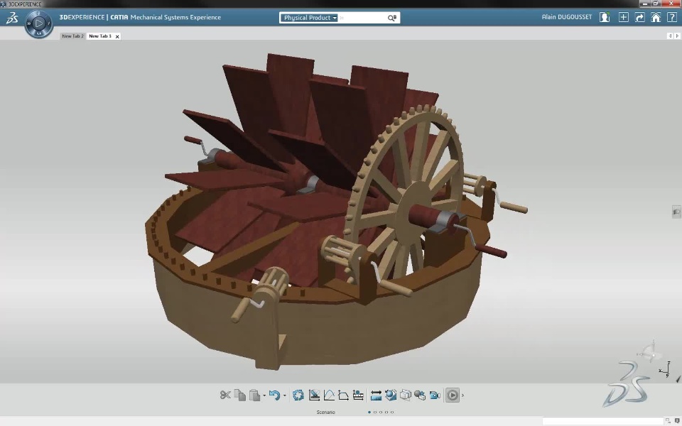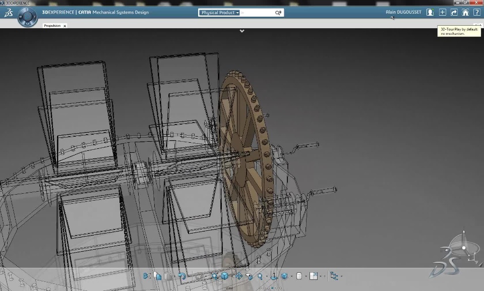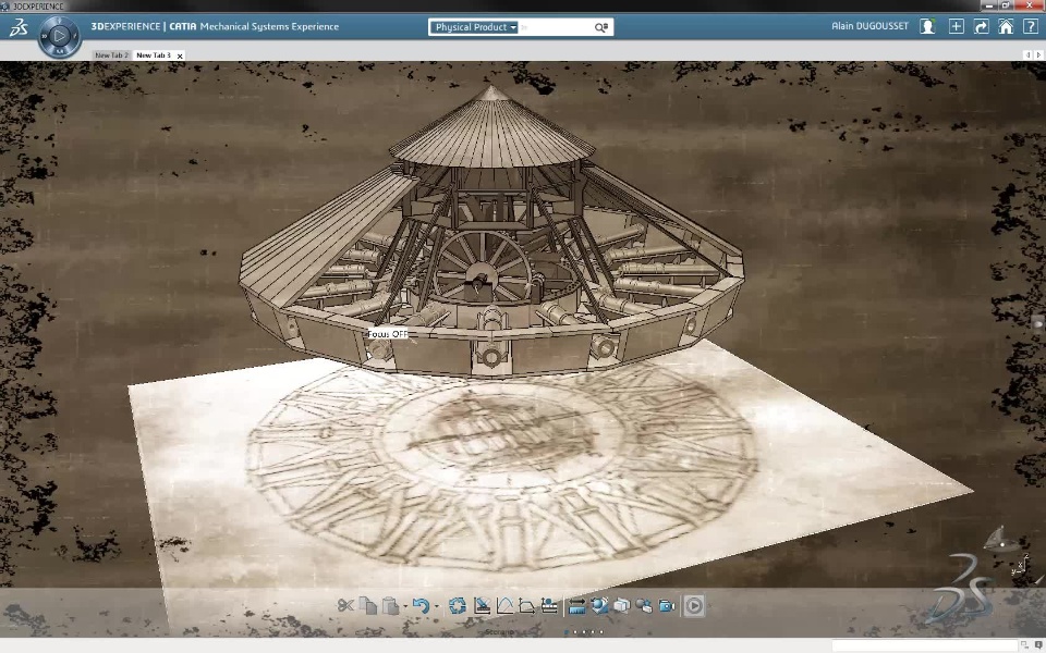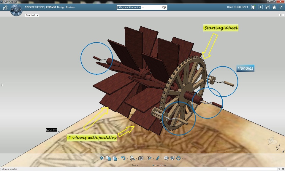 It was therefore for me an evidence to get involved in our Dassault Systèmes 3DEXPERIENCE Lab project "Open Codex", trying to virtually bring back to life one of Leonardo' machine.