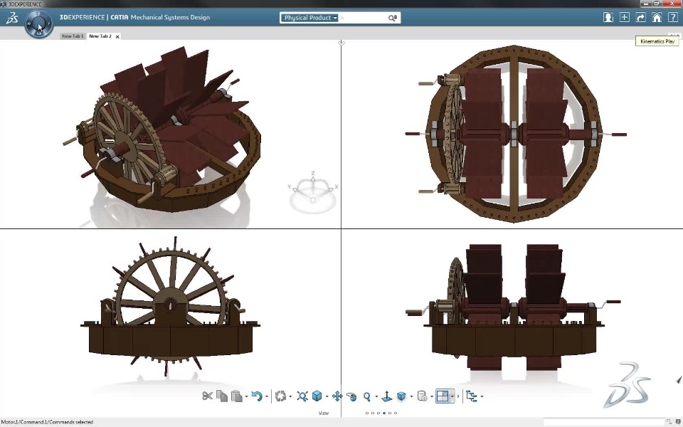 But it was clearly not enough to understand what Leonardo has in mind. I then decided to merge these drawings with the ones describing a kind a tank to create "the third dimension", using CATIA 3DEXPERIENCE Platform.