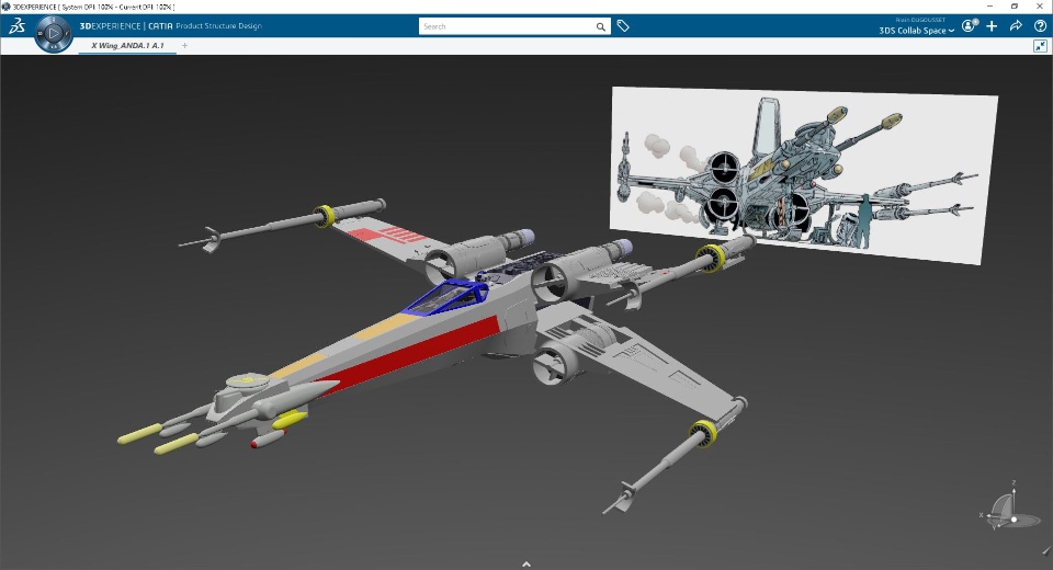 Using 3DEXPERIENCE platform capabilities, I also create another "version" of this spaceship: the Recon-X one, which does not appears in any movie but in some Star Wars comics.
