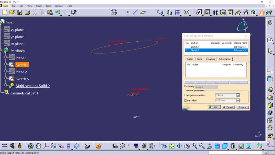 I'm trying to create a multi-section solid but it only allows me to select 2 curves instead of 3. I'm not sure why that is. Can someone please explain why the software is limiting me on this?