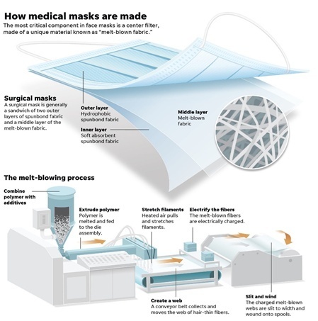One Structure, folded several times. Surgical masks are composed of several layers folded several times and mechanically bonded to maintain the stacking at the finished product stage.