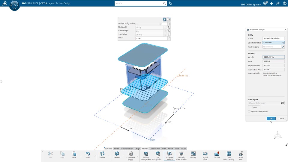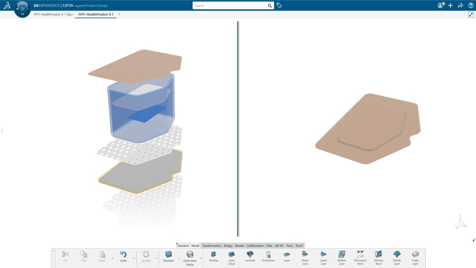 With this use case, we can design each layer and apply dedicated material using the CATIA Layered Product Design application.