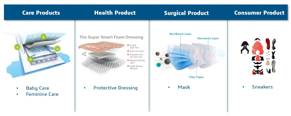 One Structure, multiple cutting shapes. Adhesive protective foam dressings are complex structure composed of several layers with specific functions: