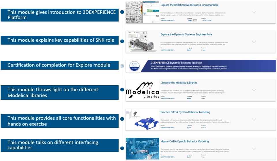 This learning path provides you with a guided and systematic approach to learn about the Dynamic Systems Engineer role. It will provide the knowledge and know how related to dynamic modeling and simulation of a multi-physics system. This learning path contains different learning modules.