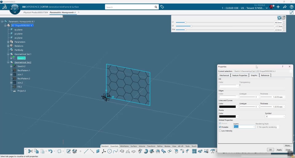 I recently saw a request about Parametric Honeycomb and I took that as a good challenge for basic CATIA license like Mechanical Designer.