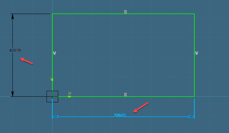 The third direction is horizontal and the spacing is defined by adding two dimensions. So I create the supporting elements in the Sketch.