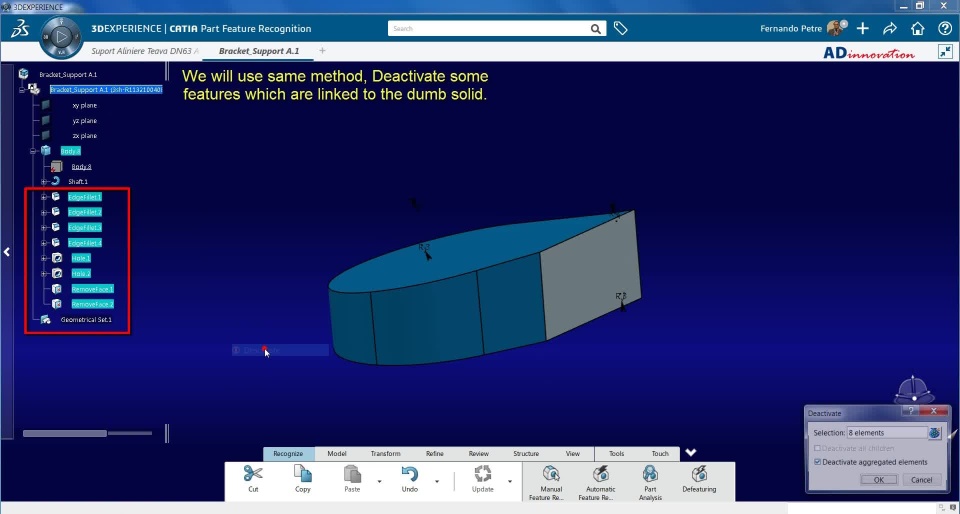 Two short examples about how to use Part Feature Recognition in CATIA 3DEXPERIENCE Cloud.
