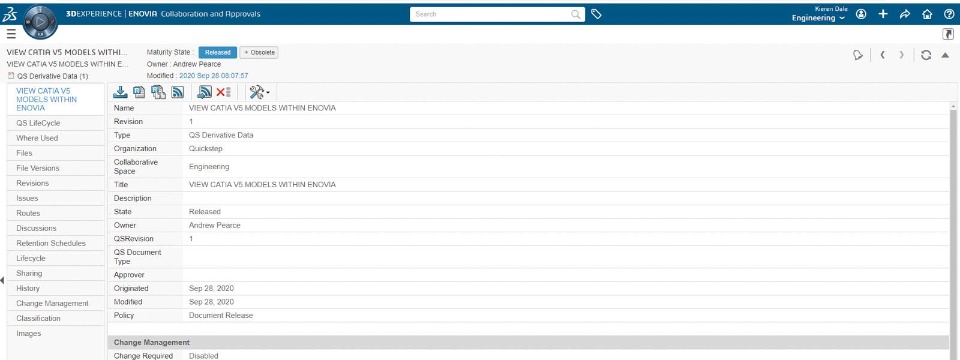 “Our previous folder structure-based system relied on everyone having the correct permissions, and the manual maintenance associated with that was considerable,” said Kieren Dale, team lead for production engineering at Quickstep. “We needed someone to physically move the files and release master documents. You had to go through an approval process before you could even get access to a document. Now in the 3DEXPERIENCE platform, we’ve automated the routing approvals with role-based access to those master documents, ready to go.”