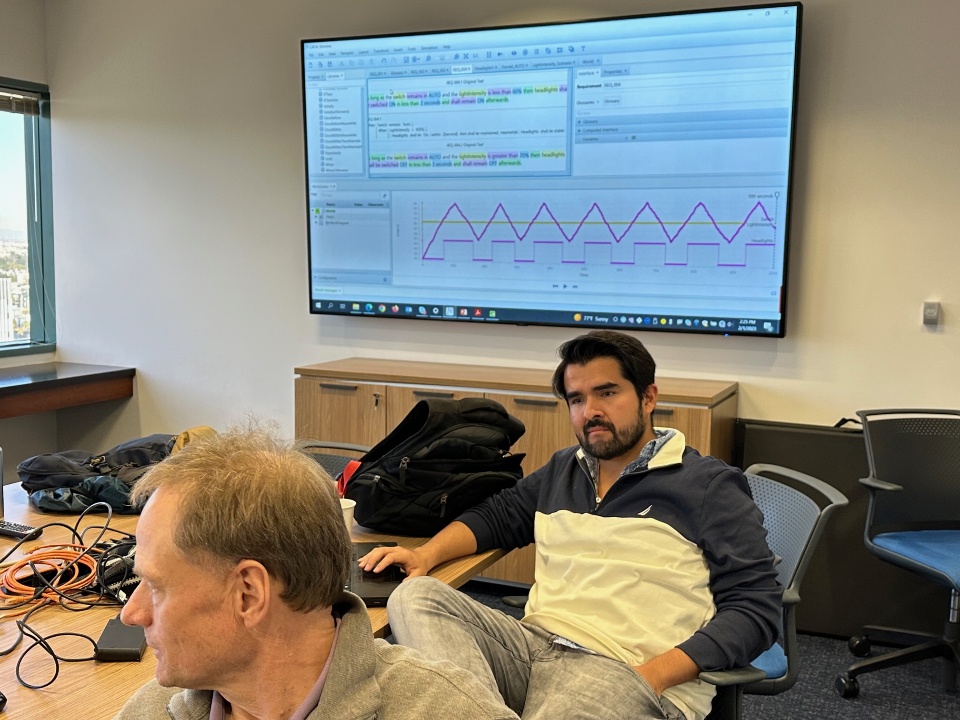 Day 3 of the training, hands-on exercises. Your see the simulation of a car headlights controller xith an Automatic mode to put ON or OFF the headlights depending on the ambiant light: