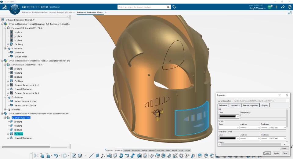 As a short conclusion of this serie of videos showing how to design a Rocketeer Helmet in 3DEXPERIENCE CATIA, I created a short demonstration of CATIA Relational Design showcasing some capabilities such as associative Part Design in context, Publications and Impact Graph for instance.