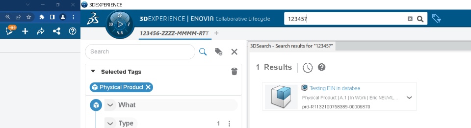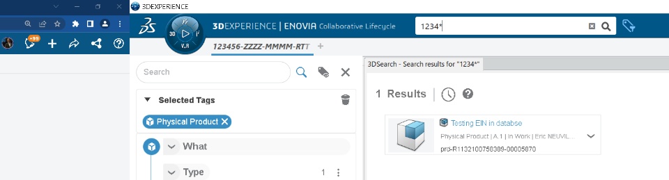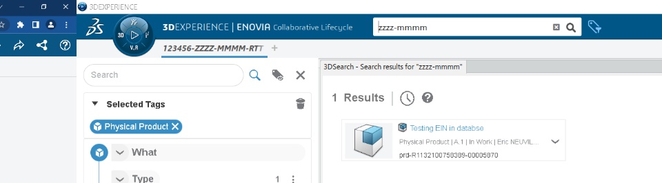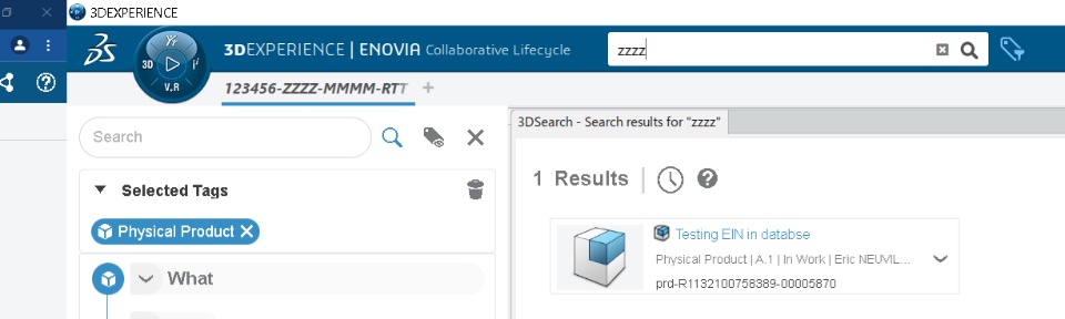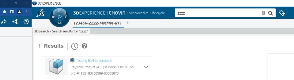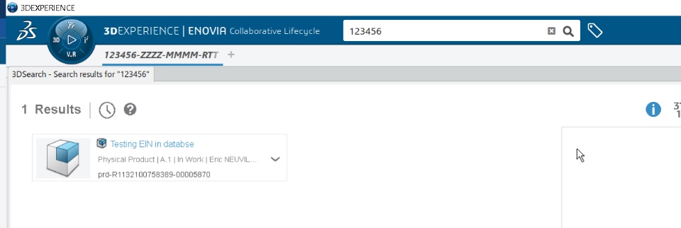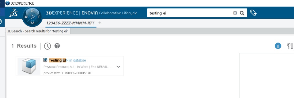 You can ask 3DX to search only for EIN (and not everything, like title, description...) using the following format: