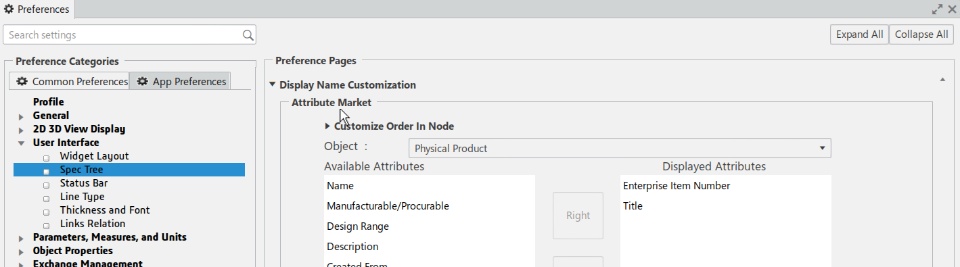 I can change the preference to show the EIN in CATIA: